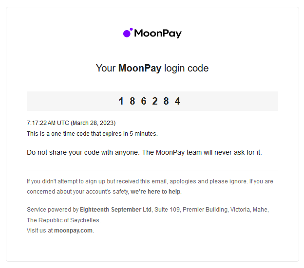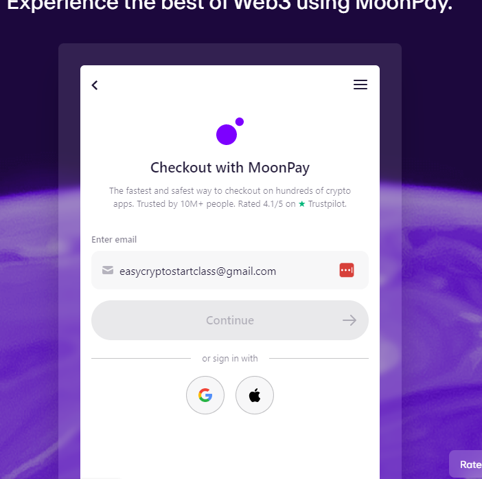 Check that the site name is exactly — www.moonpay.com. Beware of scammers who fake website domains